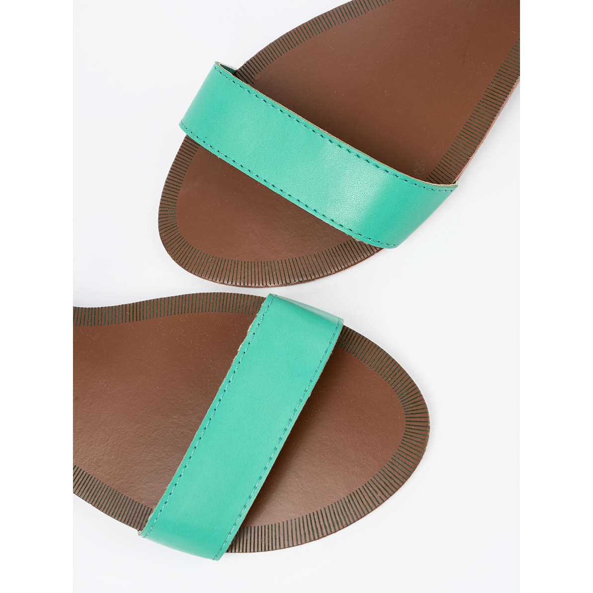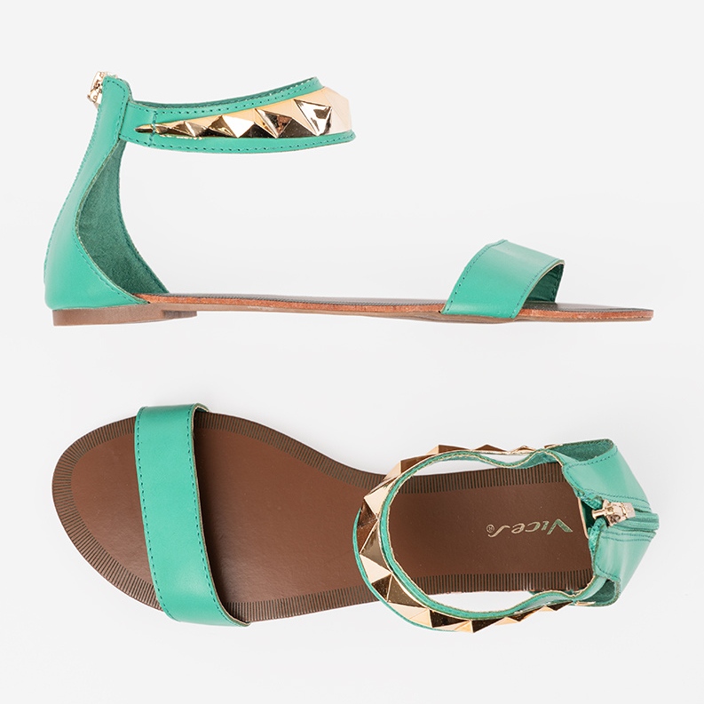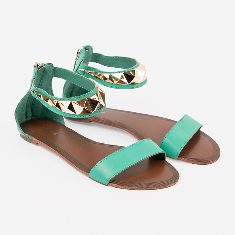 Détails: Sandales vertes avec une ceinture de cheville avec une décoration dorée