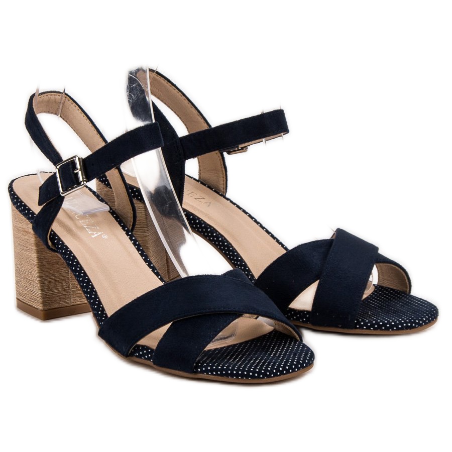 Les sandales à talons VINCEZA dans une teinte bleu marine sont un choix parfait pour des occasions élégantes comme la Sainte Communion ou un mariage. Fabriquées en daim écologique de haute qualité, ces chaussures élégantes allient confort et design tendance. Grâce au talon de 7,5 centimètres, ils mettent parfaitement en valeur la silhouette tout en assurant la stabilité au porté.