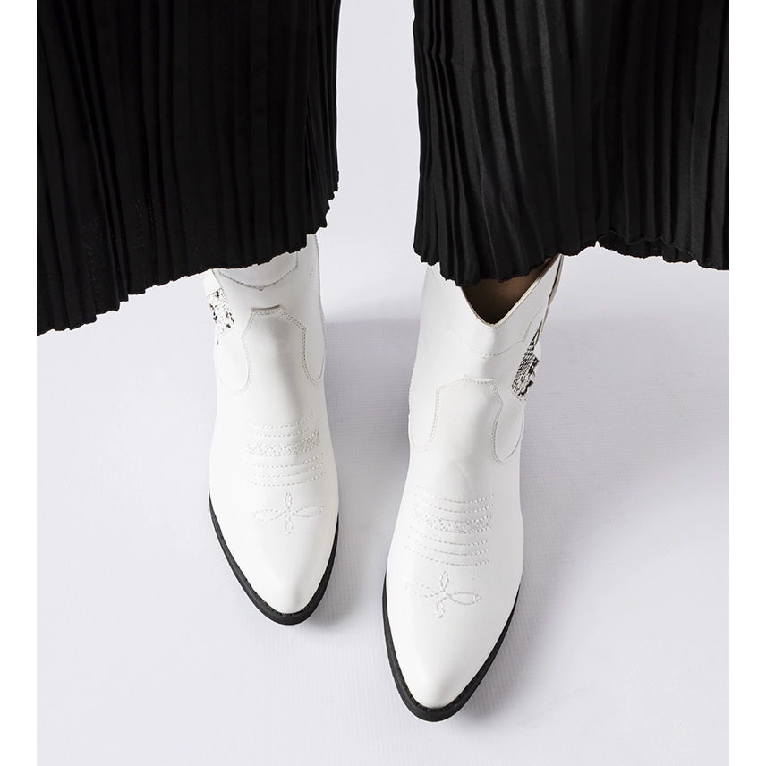 Vous recherchez des chaussures à la fois élégantes et fonctionnelles ? **Les bottes de cowboy à talons hauts blanches Henriette** sont la solution parfaite. Grâce à leur universalité, ils s'adaptent à de nombreuses tenues différentes, des jeans et t-shirts aux robes élégantes. Leur design minimaliste, dépourvu de motifs inutiles, les rend intemporels et indémodables.