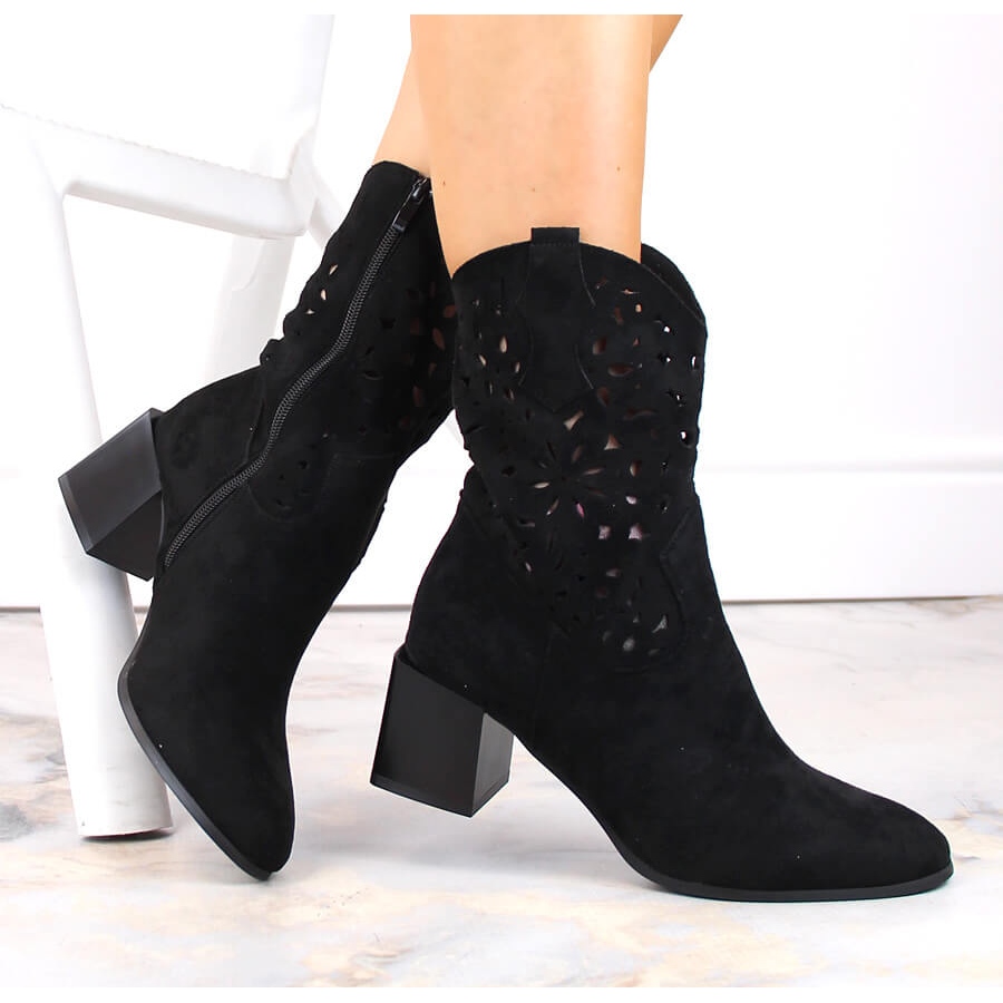 Santiags ajourées femme, non isolées, noires Jezzi ASA217-4