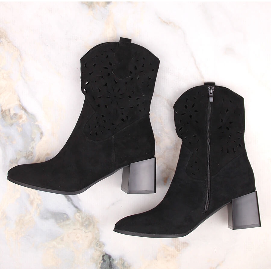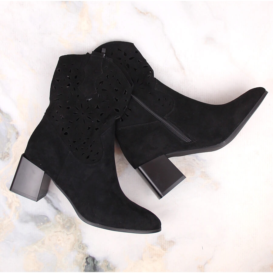 Le produit est fabriqué en cuir suédé écologique de haute qualité, ce qui garantit sa durabilité et son aspect esthétique. La couleur noire, appelée « Black » par le fabricant, confère élégance et universalité, vous permettant de combiner facilement les bottes avec divers éléments de votre garde-robe.