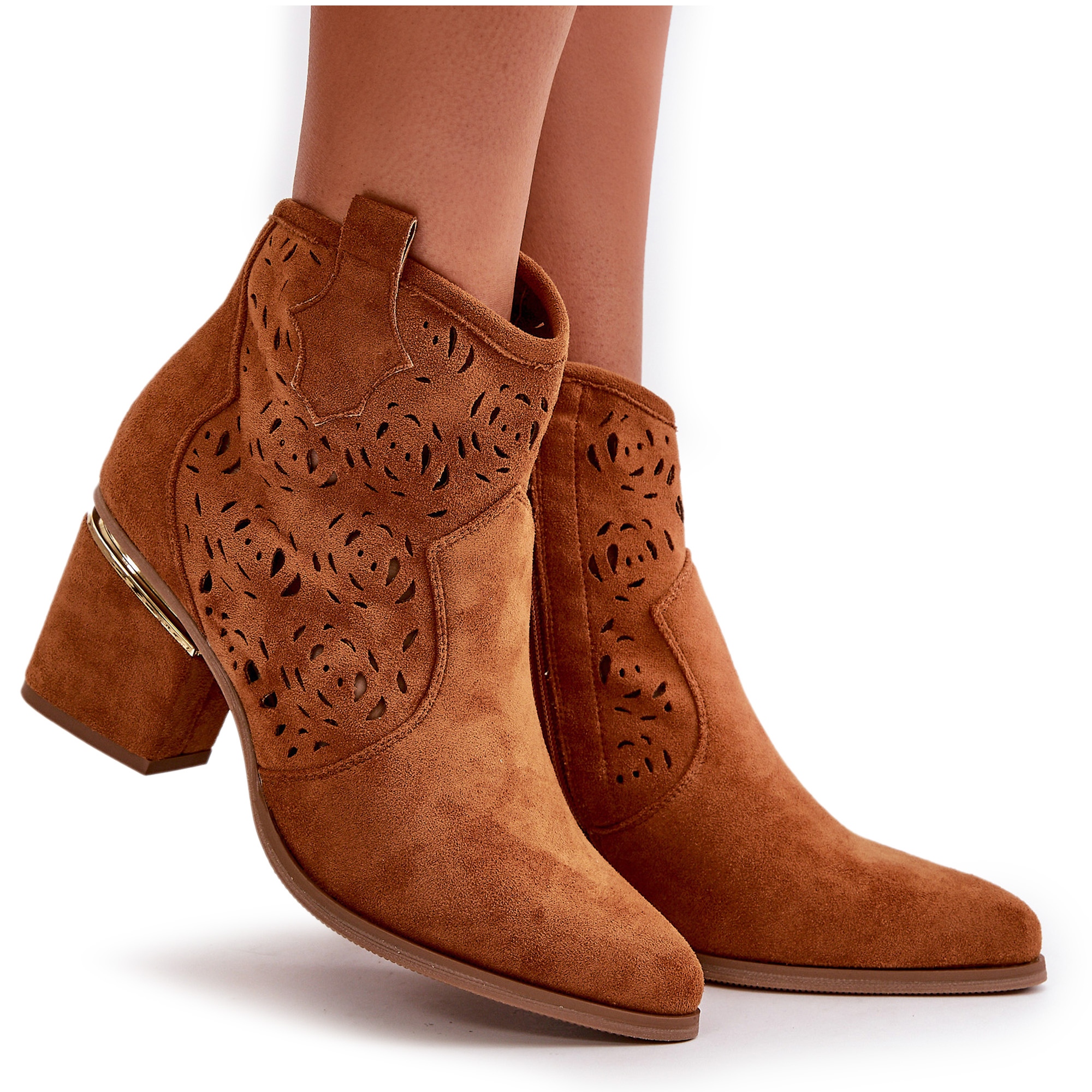 Détails: Santiags Ajourées Sur Talon Haut Fermé Par Une Fermeture Éclair Camel Vosilara brun