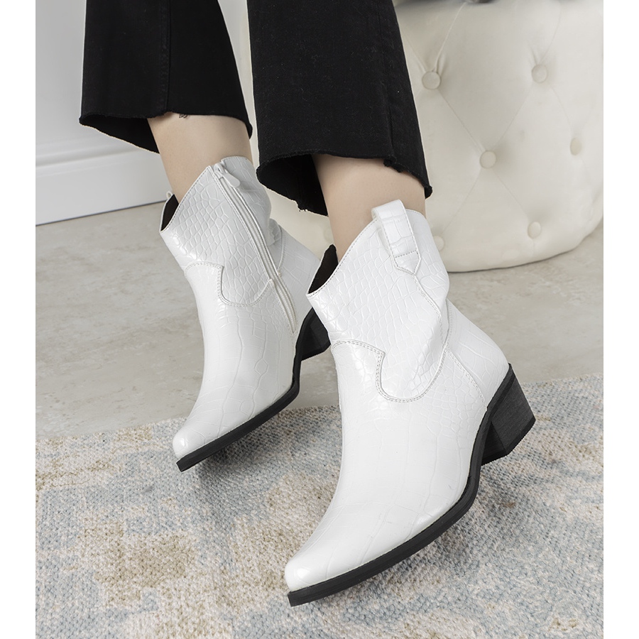 Les bottes cowboy Aurore blanches sont un choix parfait pour les femmes qui apprécient le style et le confort. Ces bottines au style tendance sont fabriquées en cuir écologique de haute qualité avec un motif accrocheur en peau de crocodile, qui leur confère un caractère unique. Ils s'intègrent parfaitement dans les tendances de l'automne et de l'hiver, alliant élégance et charme décontracté.