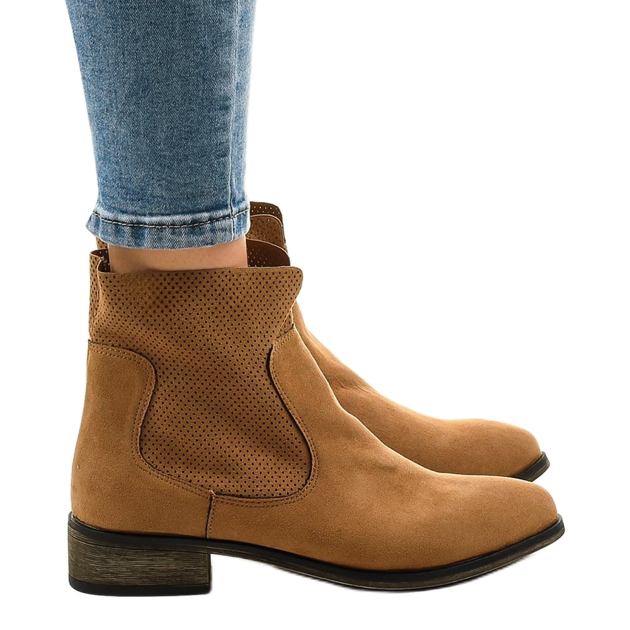 Fabriquées en cuir suédé écologique, les bottes se distinguent par une finition ajourée, ce qui les rend non seulement visuellement attrayantes, mais aussi aérées et confortables à porter. Le bout rond et le talon plat de 3 cm assurent le confort, ce qui en fait un choix idéal pour un usage quotidien. La hauteur supérieure de 17 cm arrive au-dessus de la cheville, ce qui ajoute de l'élégance et met en valeur la silhouette.