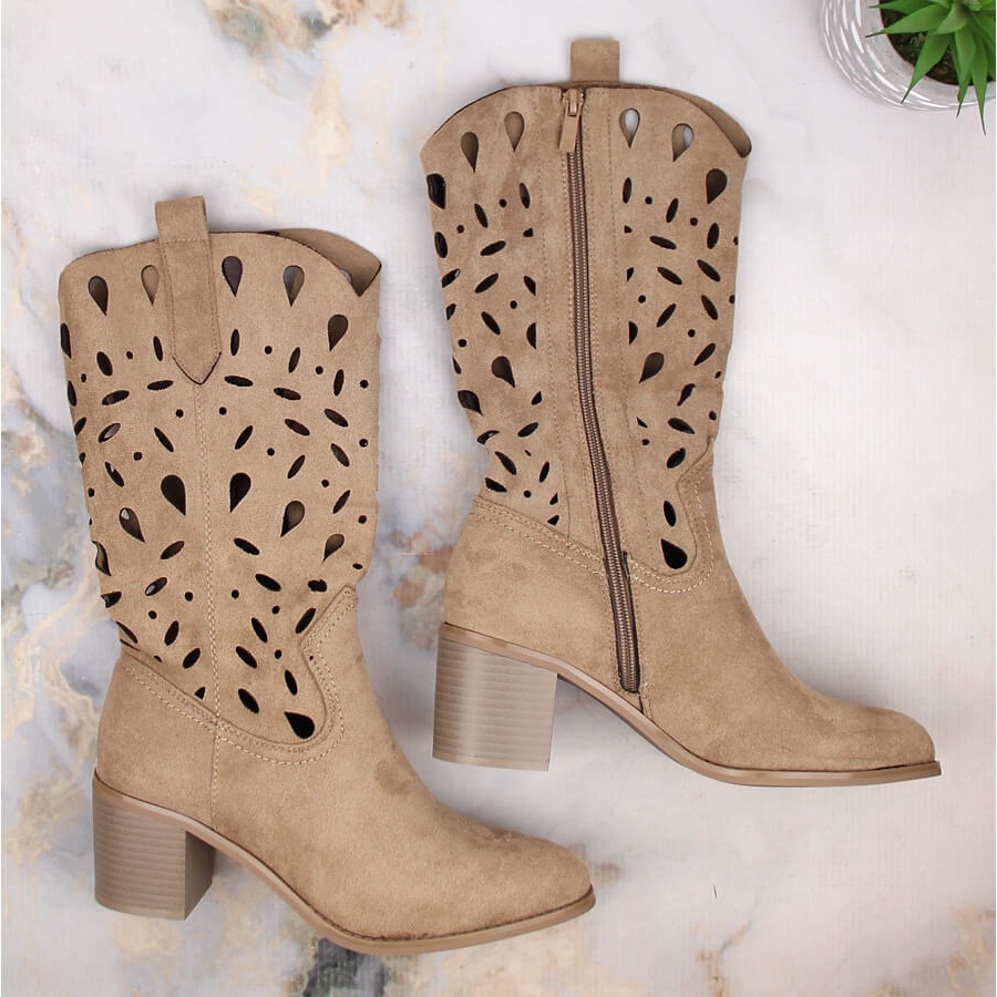 M. DASZYŃSKI M. DASZYŃSKI Santiags chaudes ajourées pour femmes beige M.Daszyński MR2337-3