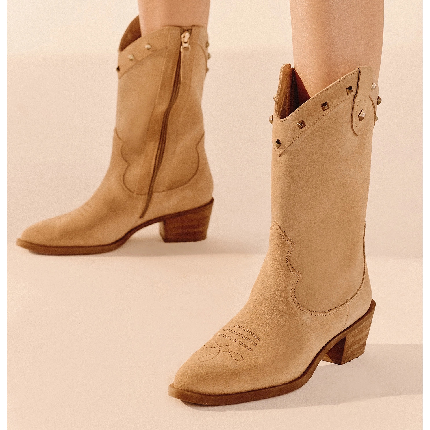 Détails: Marco Shoes Santiags en daim à jets beige