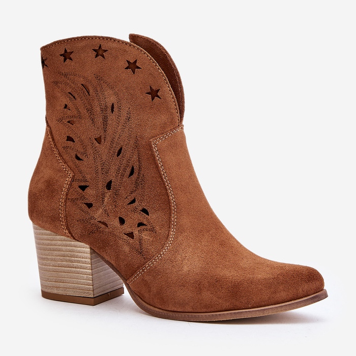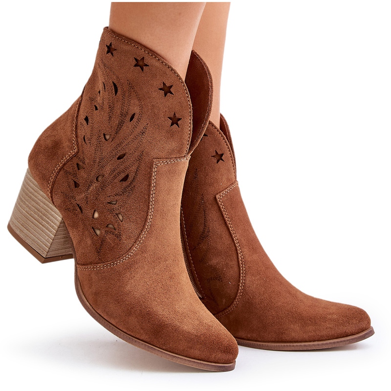 Détails: Santiags En Daim Ajouré Sur Talon Haut Lewski 3613 Marron brun