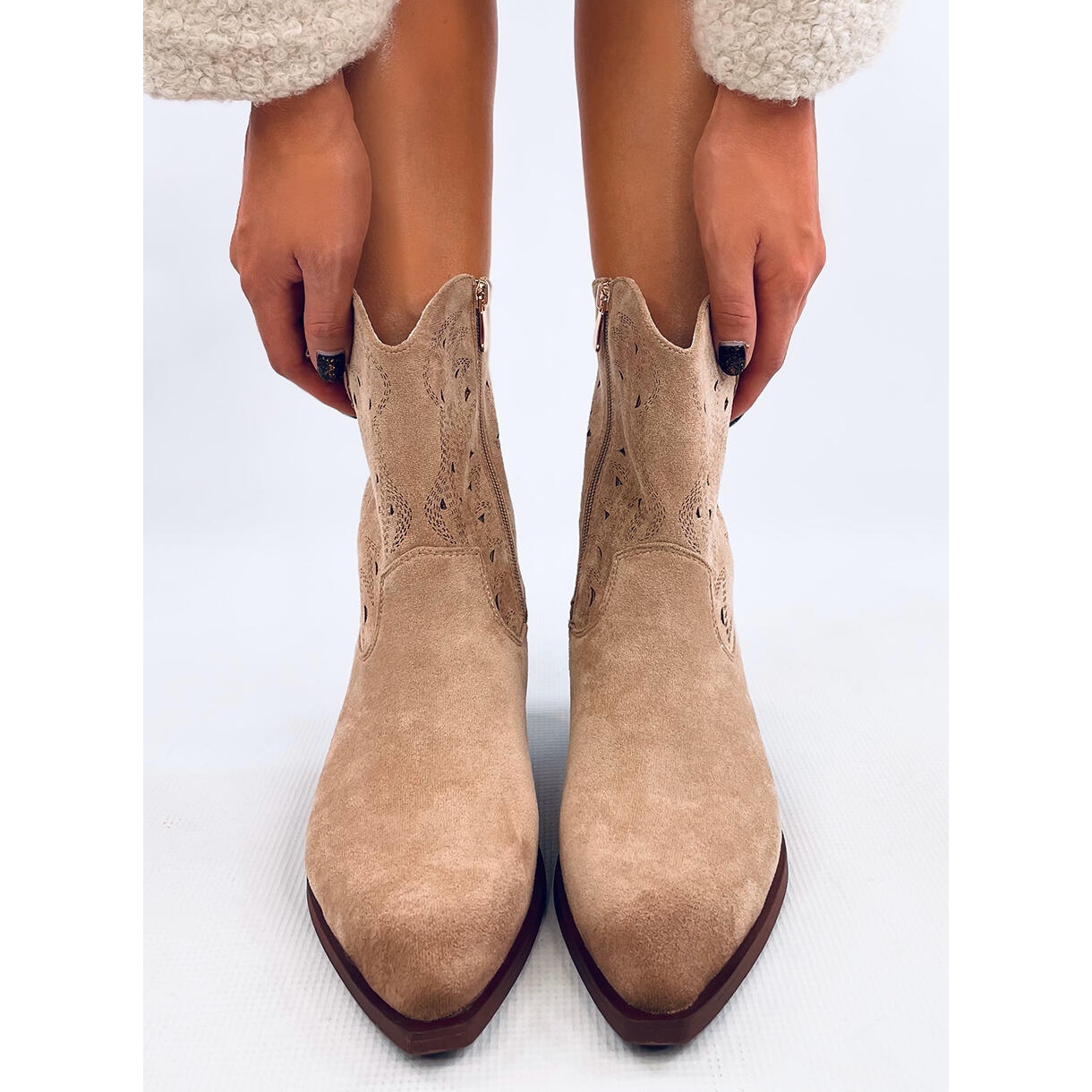 Détails: Santiags femme beiges ajourées