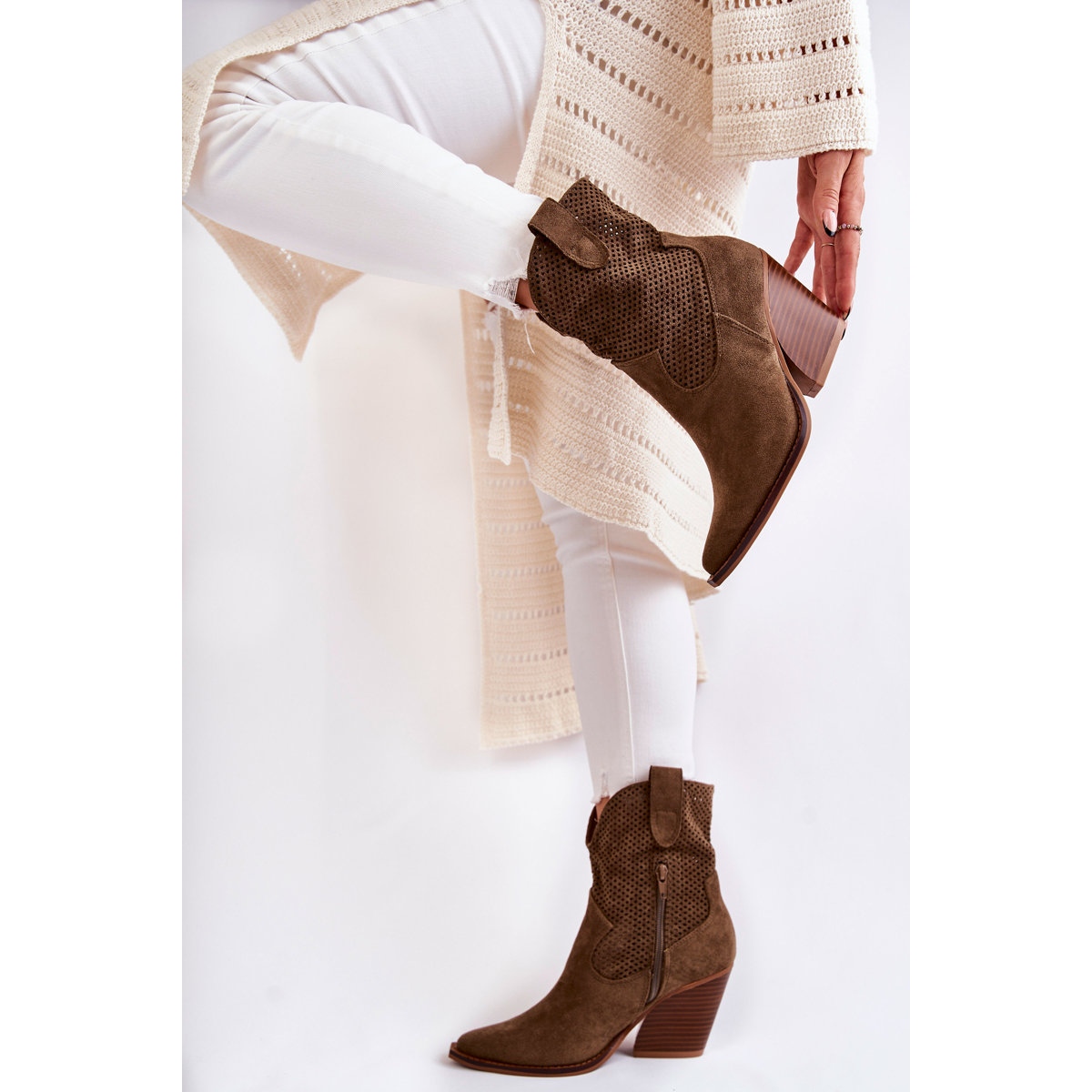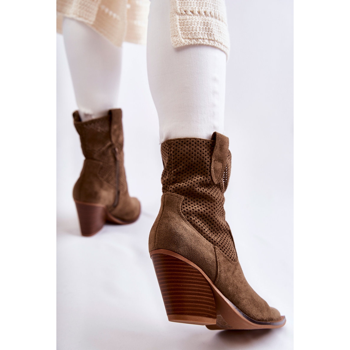 Découvrez style et confort avec les bottes cowboy ajourées en daim kaki FB1 pour femme. Ces bottes uniques, fabriquées en éco-daim de haute qualité, allient design à la mode et solutions pratiques. Le motif ajouré apporte légèreté et caractère, et le contrefort du talon rigidifié et les bouts pointus garantissent un ajustement et un confort de port parfaits.