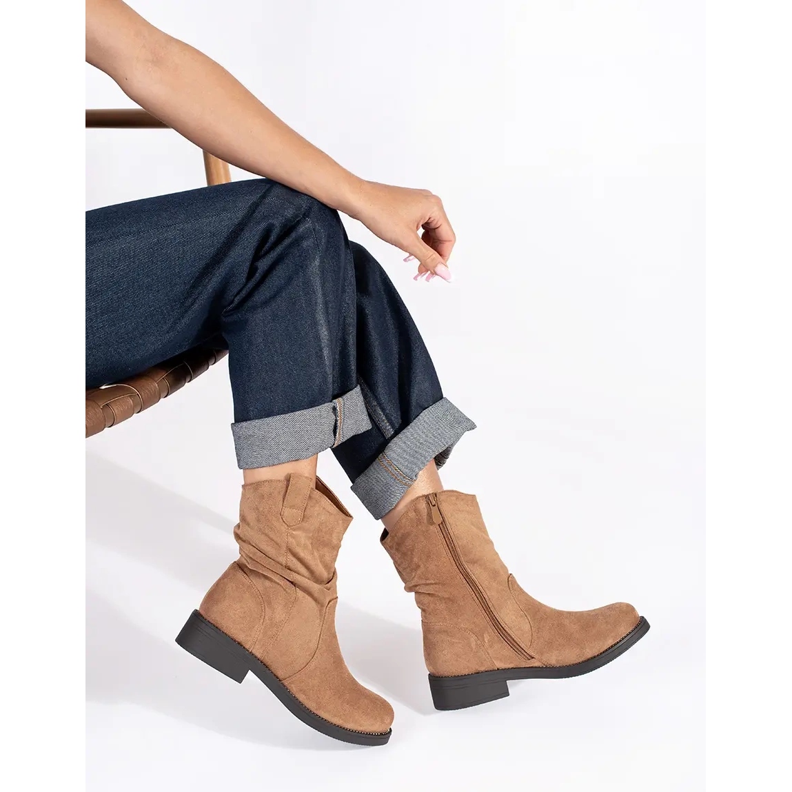 Ces bottines en daim sont parfaites aussi bien pour le quotidien que pour les occasions spéciales. La fermeture éclair facilite l'enfilage et le talon intégré offre maintien et stabilité. La semelle en plastique lisse est durable et résistante à l'abrasion, ce qui fait de ces chaussures un choix pratique pour de nombreuses saisons.