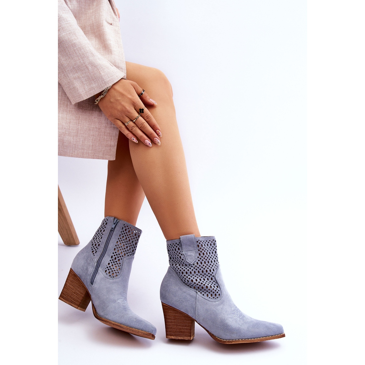 Fabriquées en daim écologique de haute qualité, les bottes présentent un motif ajouré et des coutures soignées sur le devant, ce qui leur confère un caractère unique. Un talon stable de 7 cm en forme de bloc garantit le confort de port, et la semelle intérieure en matériau offre un soutien adéquat aux pieds.