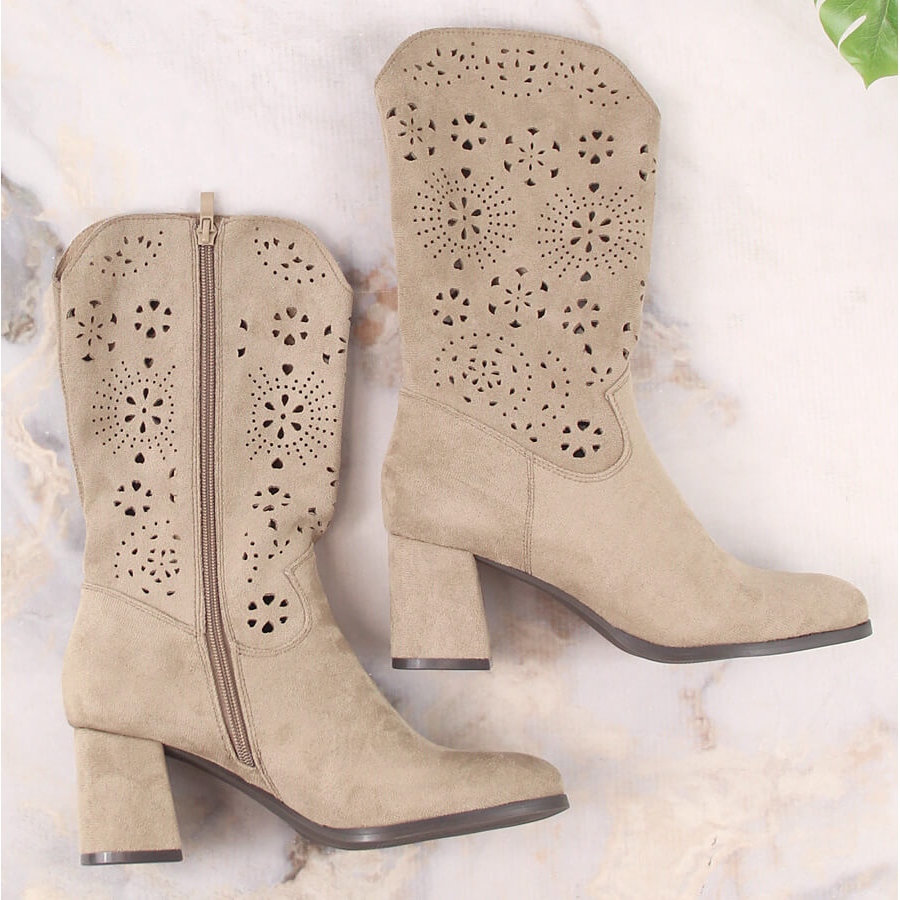 M. DASZYŃSKI M. DASZYŃSKI Santiags femme printemps ajourées beige M.Daszyński SA156-11