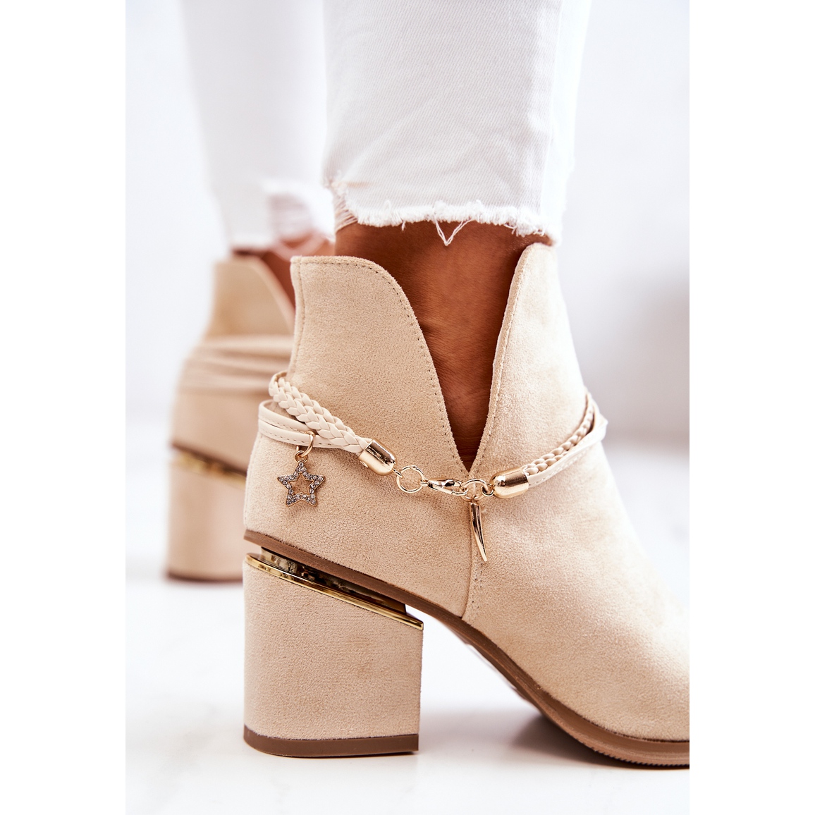 Le modèle Inessa est un modèle à enfiler confortable avec une courte fermeture éclair, ce qui le rend facile à enfiler et à enlever. Le bout pointu et le talon bloc de 7 cm ajoutent de l'élégance et les rendent adaptés à diverses occasions - des promenades décontractées aux sorties entre amis. Grâce à leur couleur beige universelle, les bottes s'accordent parfaitement avec les robes, jupes et pantalons.