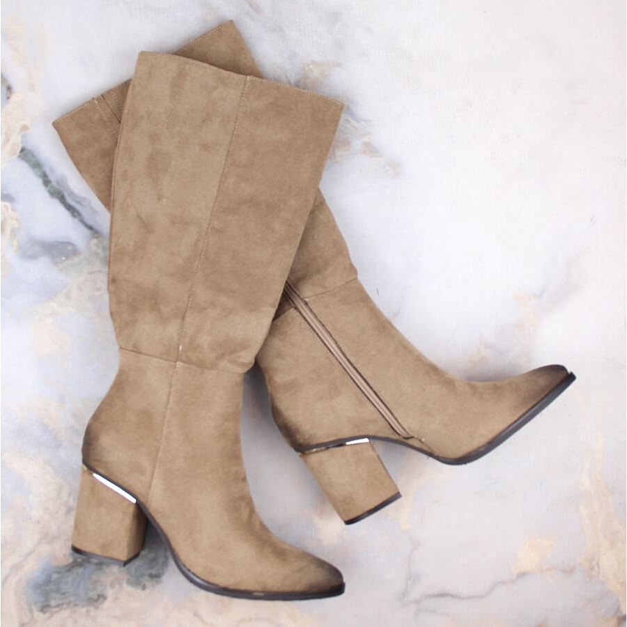 Les bottes sont isolées, ce qui fournira une excellente chaleur lors des journées les plus froides. La doublure et la semelle intérieure des chaussures sont en couvre-chaussures. Le modèle se ferme avec une fermeture éclair et sa hauteur atteint les genoux, ce qui apportera non seulement de la chaleur mais aussi un look élégant. Les chaussures ont un bout pointu.