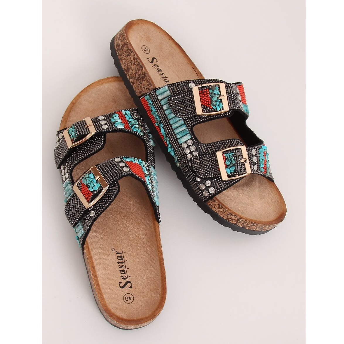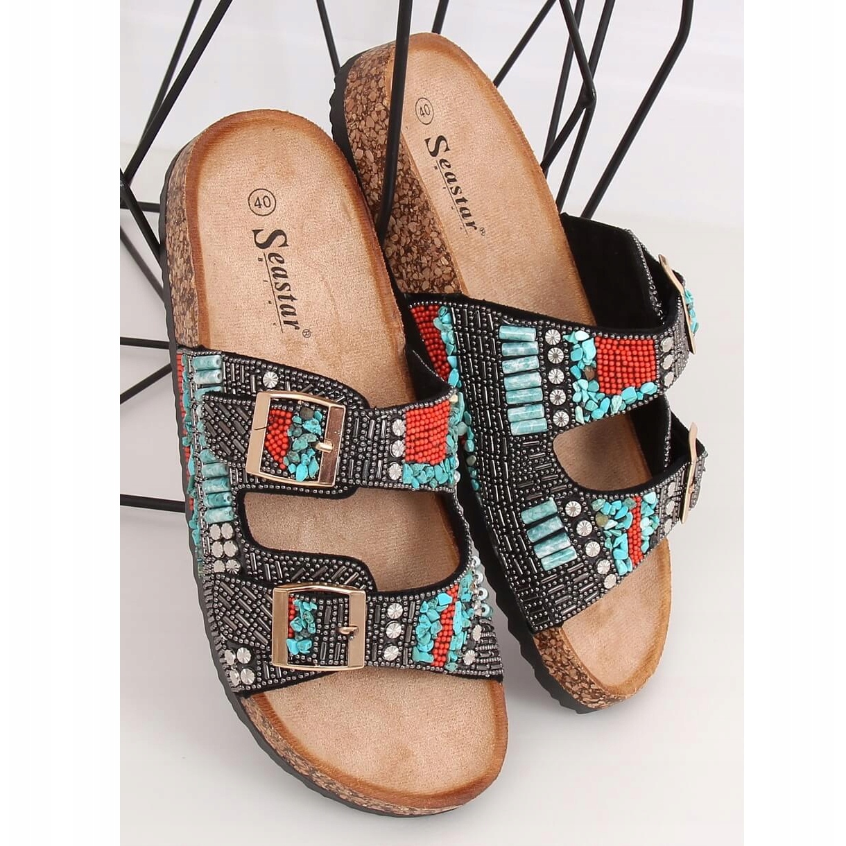 Nous vous présentons les chaussons pour femmes Scholki avec perles en noir (modèle CK133P Black). Ces tongs uniques avec une semelle en liège sont un choix parfait pour les journées d'été, alliant style décontracté et originalité avec des accents ethniques. Les décorations accrocheuses avec des pierres leur confèrent un caractère unique et leur design multicolore les rend parfaitement adaptées à différents styles de vacances.