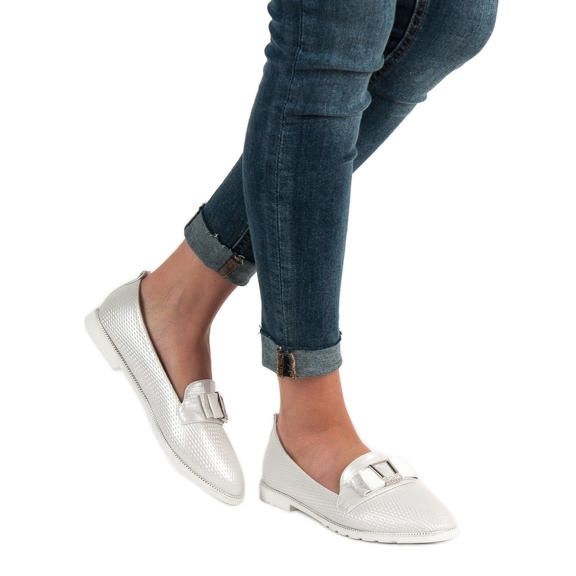 Découvrez des seigneurs féminins extraordinaires Ch. Création au coloris argenté, qui ravira toutes les amatrices d'accessoires de mode ! Ces chaussures élégantes s'intègrent parfaitement aux styles du quotidien, leur ajoutant un caractère unique. Leur design unique attire l'attention, et les décorations argentées et la texture intéressante du matériau distinguent ce modèle des autres.
