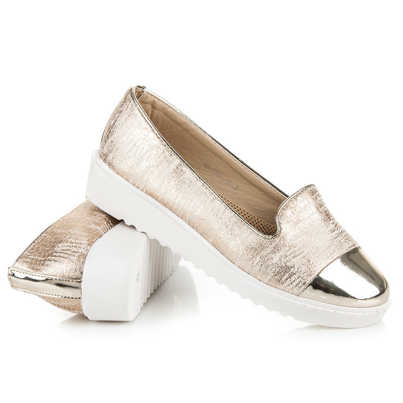 Découvrez les Golden Lords extrêmement élégants et tendance sur la Plateforme du fabricant Nio Nio. Ces ballerines uniques allient confort et style, ce qui en fait le choix parfait pour toute occasion. Fabriqués en cuir écologique de haute qualité, ils garantissent durabilité et aspect attrayant.