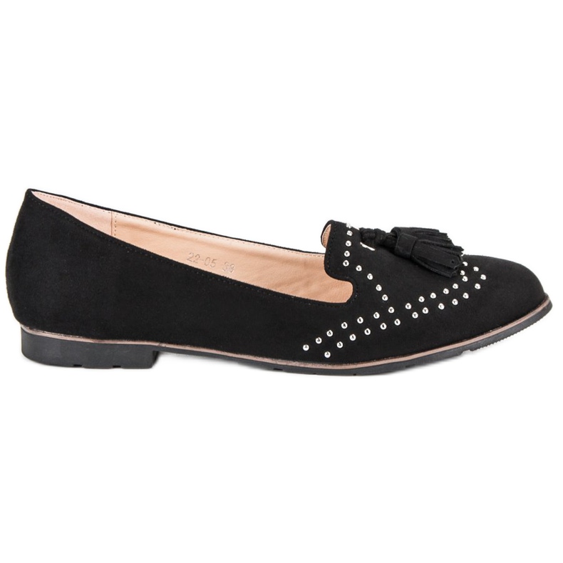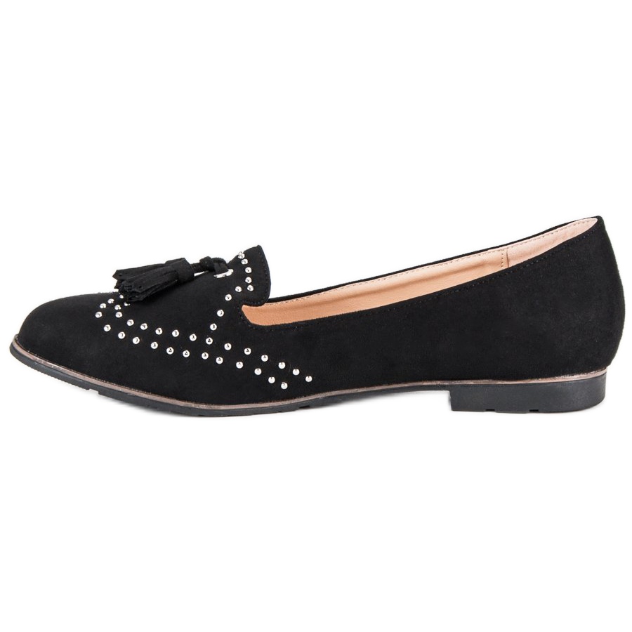 Un élément caractéristique de ces seigneurs sont les franges décoratives et les applications de strass, qui leur confèrent un style unique. L'intérieur des chaussures est doublé de cuir écologique, ce qui augmente le confort d'utilisation. Les Black Super Me Lords sont un choix parfait non seulement pour les journées de printemps et d'été, mais fonctionnent également bien dans une glacière, ce qui en fait un ajout universel à la garde-robe de chaque femme.