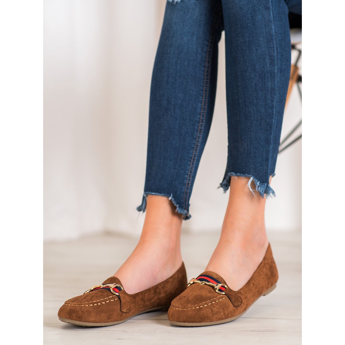 Nous vous présentons les seigneurs marron avec décoration de Fama - la combinaison parfaite d'élégance et de confort. Ces chaussures classiques en éco-cuir doux en daim séduisent par leur teinte chaude, qui se marie parfaitement avec différents styles. Ils s'accordent parfaitement avec des jeans, mais ils peuvent également être combinés avec des robes ou des jupes, ce qui les rend extrêmement universels.