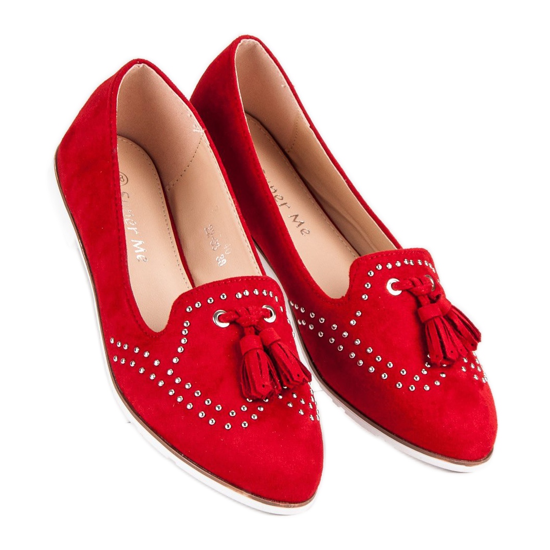Les seigneurs rouges de la marque Super Me sont un incontournable de la garde-robe de chaque femme. Fabriquées en daim écologique d'une couleur intense et énergique, ces chaussures sont la combinaison parfaite entre design tendance et confort de port. La semelle blanche contrastée ajoute du caractère et de subtiles décorations en cristal ajoutent une touche d'élégance et de brillance.