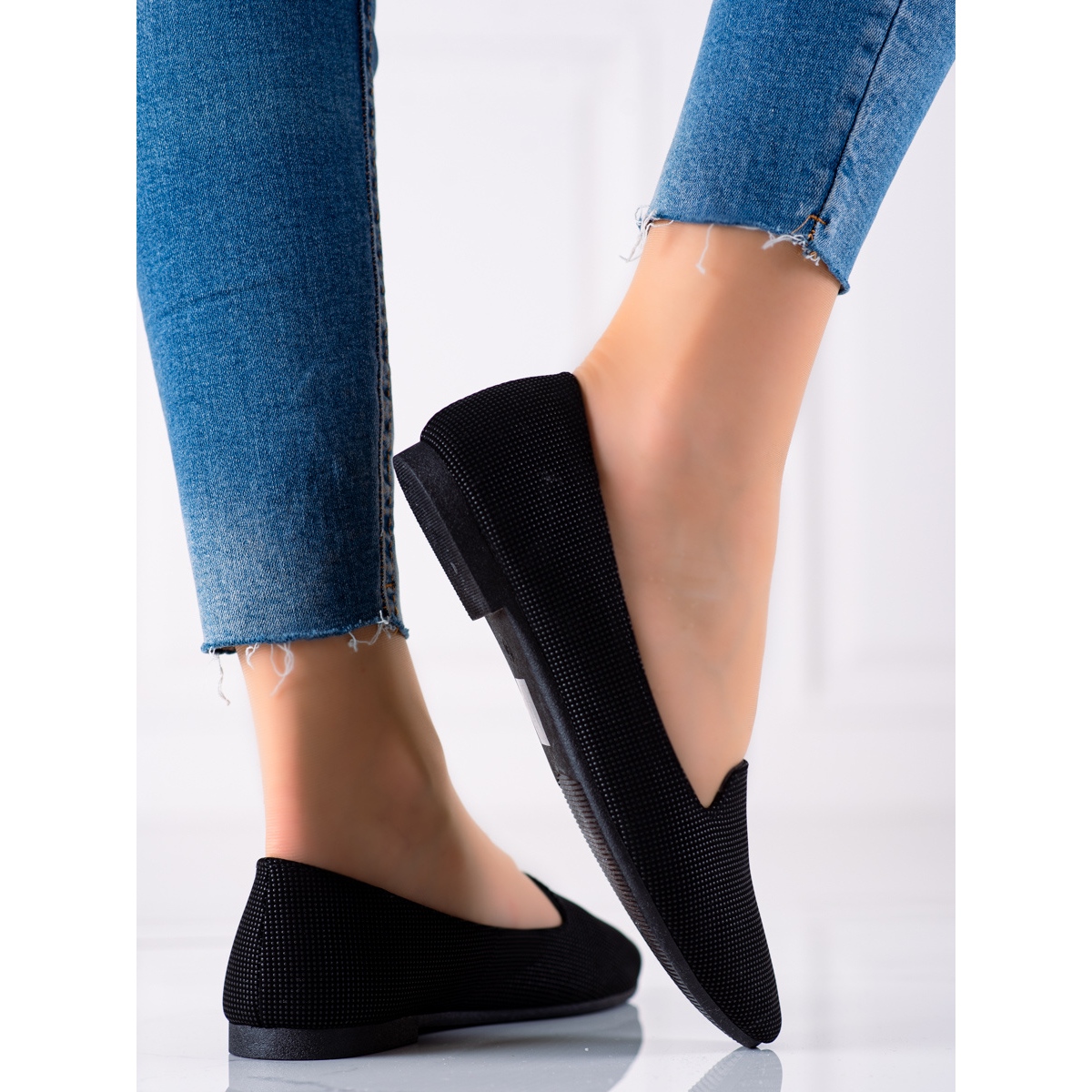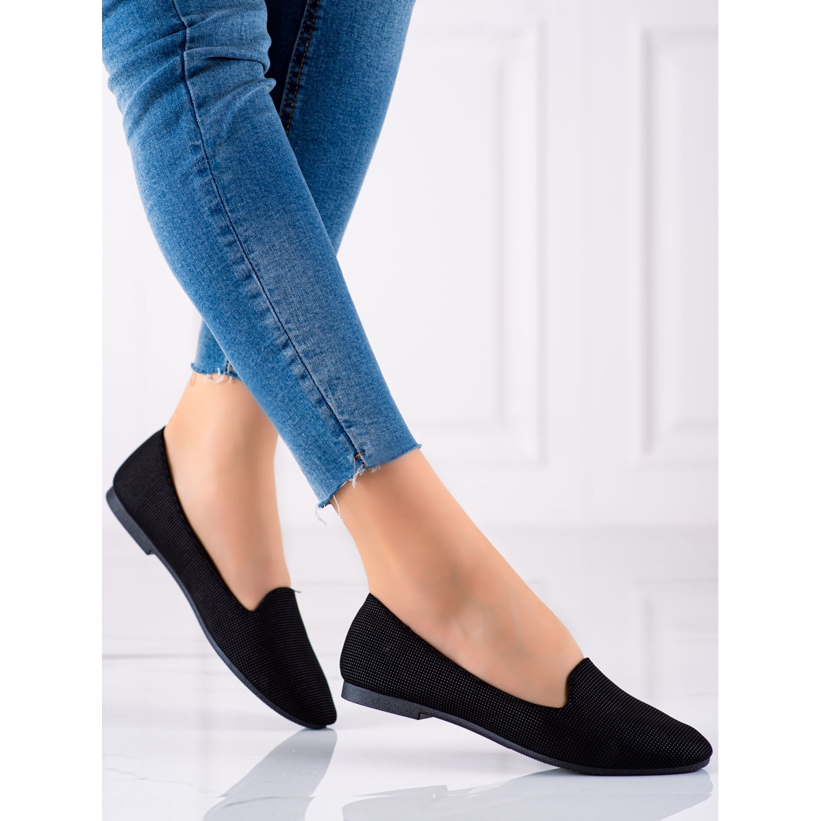 La couleur noire combinée à des pois délicats permet à ces seigneurs de se marier parfaitement avec une variété de tenues - des robes aériennes aux jeans. Grâce au cuir écologique comme matériau de la semelle intérieure, vous pouvez être sûr que vos pieds se sentiront à l'aise toute la journée.