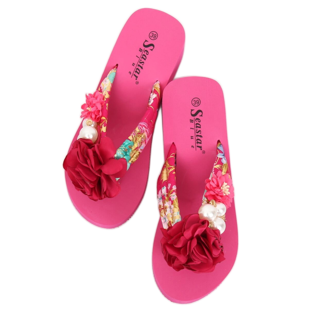 Ces tongs se caractérisent par une légère cale de 5 cm de hauteur, ce qui les rend parfaites pour les longues promenades. La semelle en mousse extrêmement douce assure un confort même après de nombreuses heures de port, et le bout ouvert permet aux pieds de respirer. Les fleurs décoratives et les perles leur donnent du charme et en font un hit mode de la saison. Un tissu de haute qualité est utilisé dans les matériaux extérieurs, ce qui garantit la durabilité et une apparence élégante.