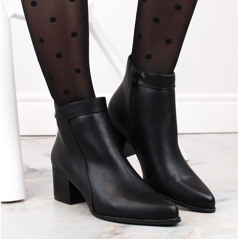 Les bottes ont un bout pointu et une fermeture éclair, ce qui facilite l'enfilage et le retrait des chaussures. Le type de talon est bloc, ce qui assure la stabilité et le confort de port tout au long de la journée.