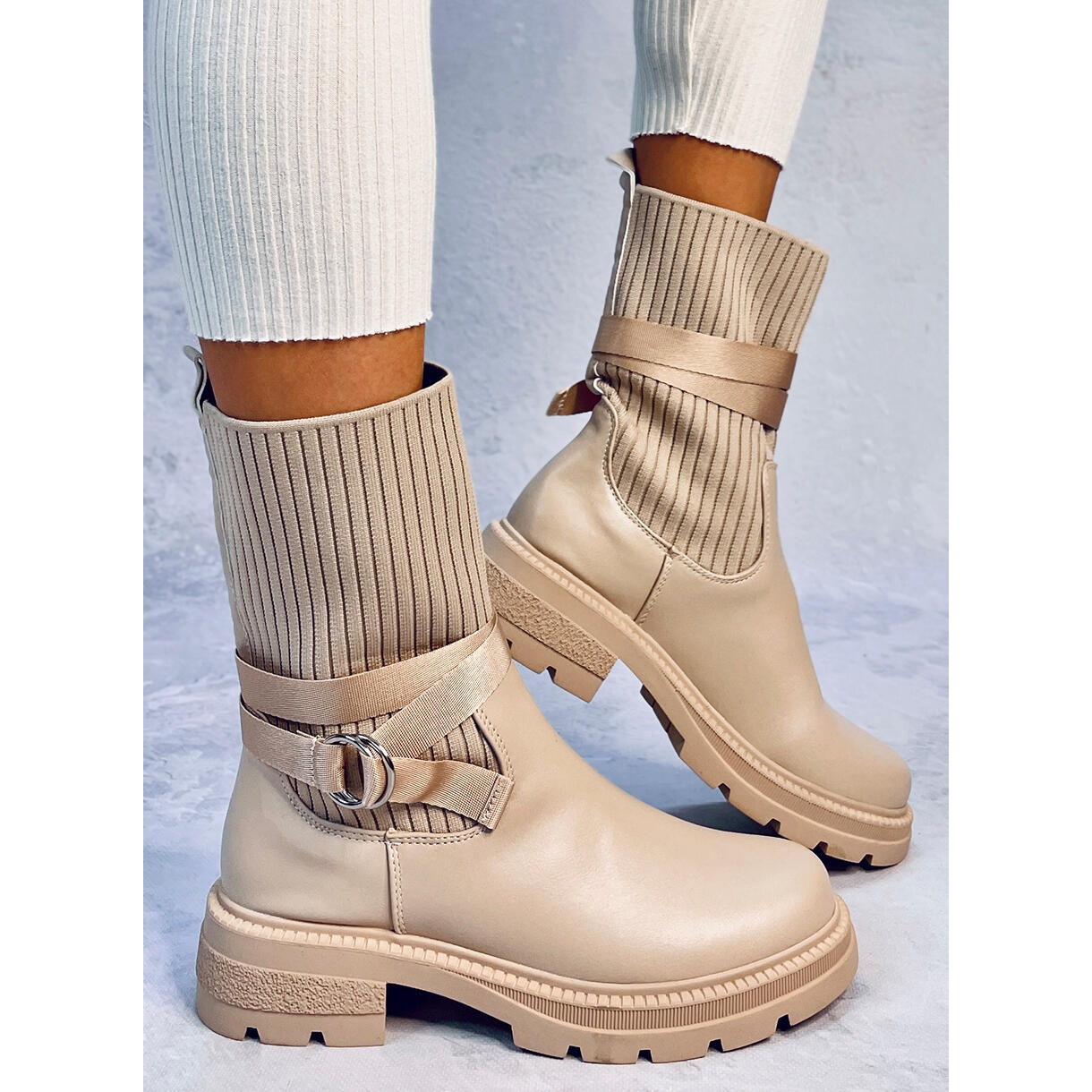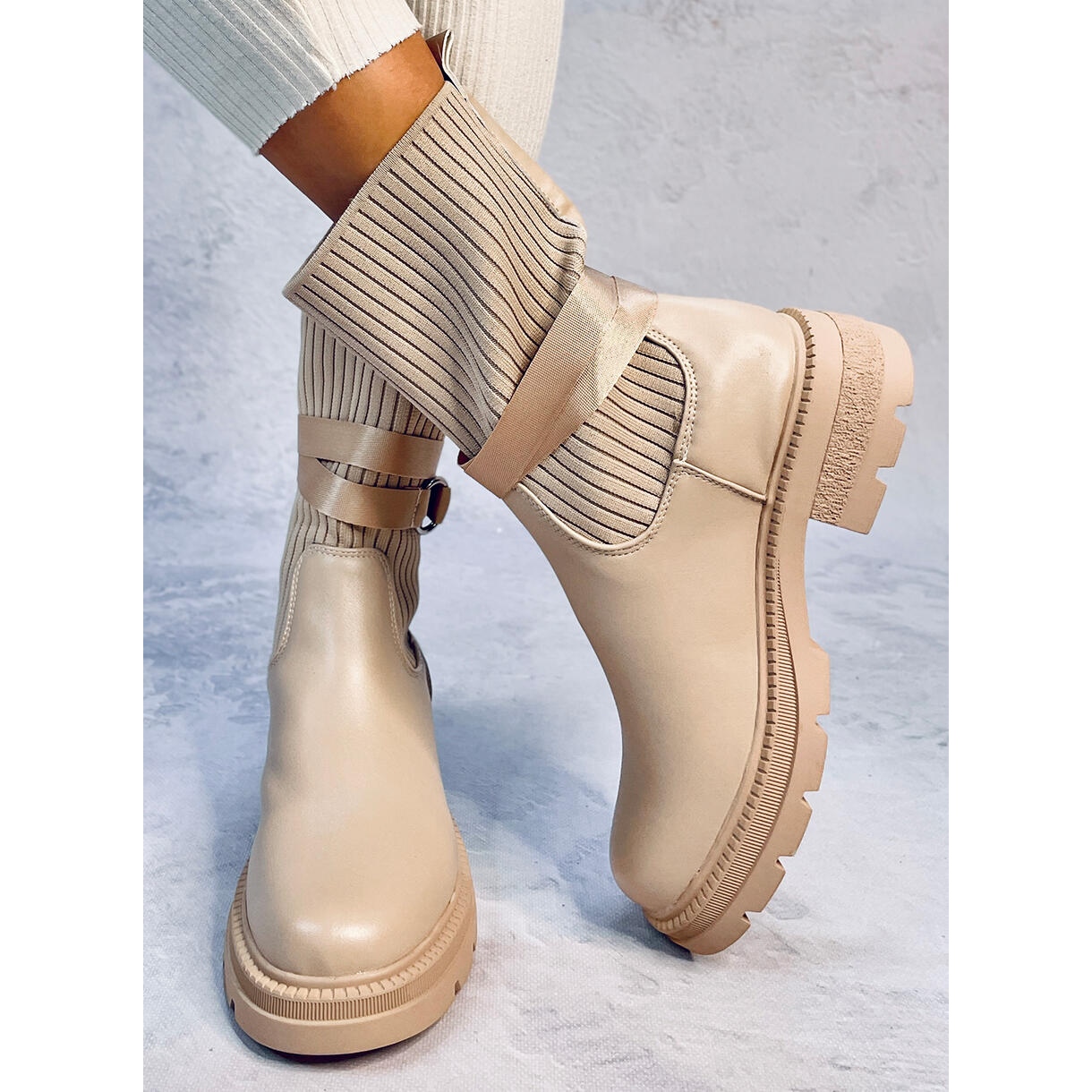 Bottines pour femmes à semelle épaisse. La tige est constituée d'un tissu flexible qui ressemble à une chaussette et s'adapte parfaitement aux jambes. Enfiler ces chaussures est simple et rapide – voyez par vous-même ! Ce sont des chaussures parfaites au quotidien :) Matériau extérieur - tissu + similicuir.