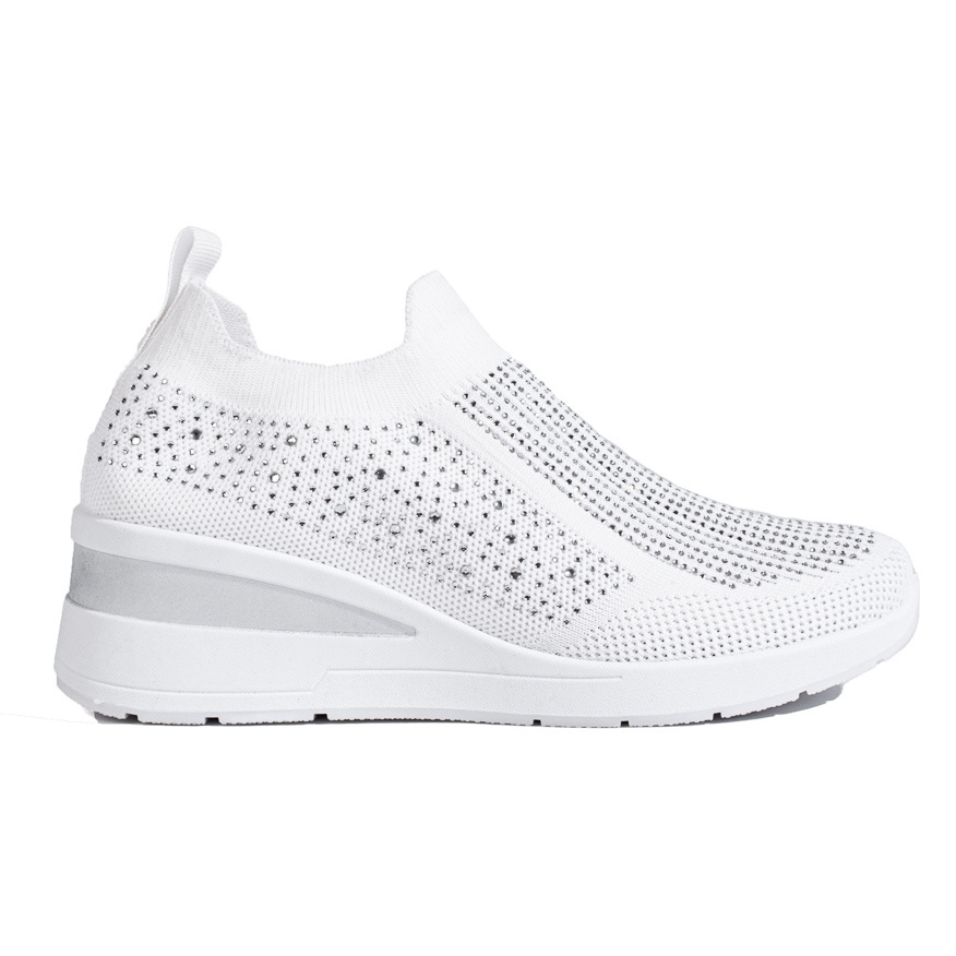 Un élément décoratif particulier est l'ajout de zircons, qui donnent aux chaussures un éclat subtil. La combinaison élégante du blanc avec des accents argentés supplémentaires leur confère un caractère intemporel, leur permettant d'être portés aussi bien en journée que pour des sorties en soirée.
