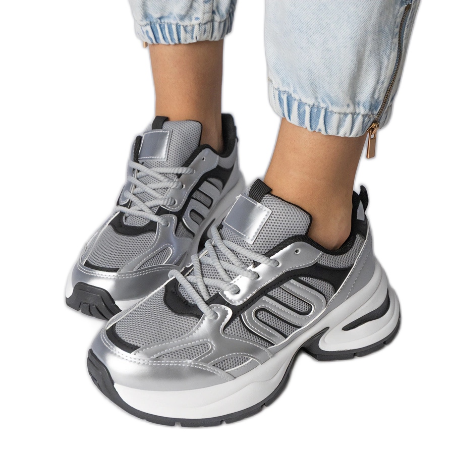 Silver Sports Sneakers sur une semelle massive est une proposition qui attirera certainement l'attention de toutes les femmes à la mode. Le modèle YY-9 L dans une couleur argentée élégante combine le style et le confort modernes, parfaitement s'adaptant aux tendances actuelles. La plate-forme de 6 cm de haut garantit un excellent amorti, ce qui rend les chaussures parfaites pour les stylisations quotidiennes et pour les activités sportives.