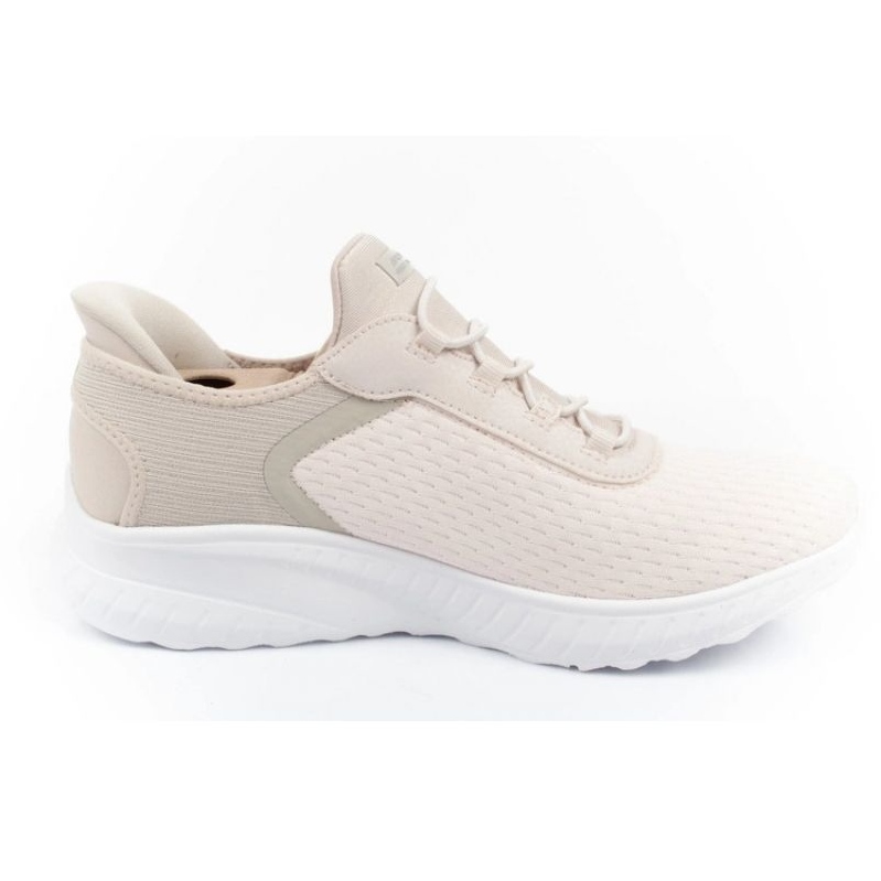 Ces chaussures Skechers uniques sont entièrement végétaliennes, ce qui sera apprécié par les personnes à la recherche de solutions écologiques. De couleur beige avec une semelle blanche, elles s'intégreront parfaitement à tous les styles, pour le quotidien et les activités lifestyle.