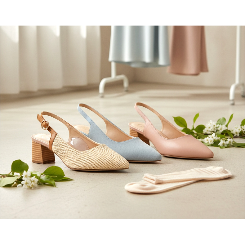 Si votre pied est fin, choisissez un modèle avec un talon légèrement avancé, cela évitera que la chaussure ne glisse. Si vous avez les pieds larges, recherchez des slingbacks avec plus de rembourrage au niveau des orteils et une sangle plus élastique. Les inserts en gel sous l'avant-pied augmentent considérablement le confort de port, notamment avec des talons plus hauts.