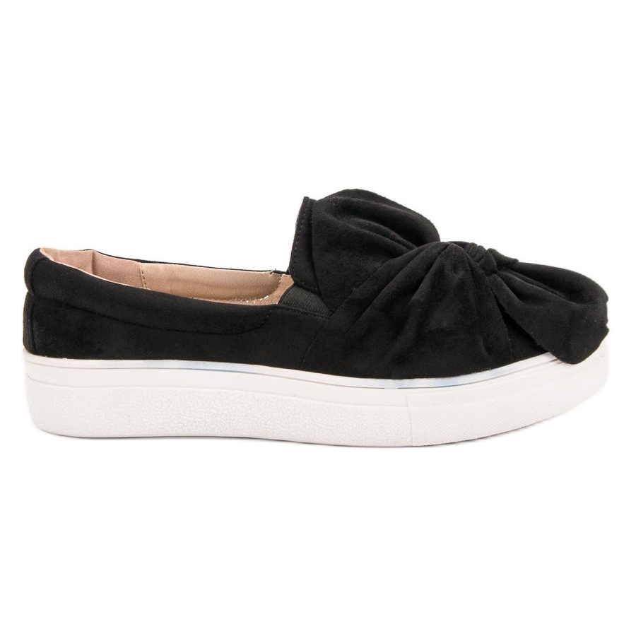 Découvrez l'élégance et le confort avec les slip-ons en daim noir avec nœud de Vices ! Ces chaussures uniques combinent un style moderne avec des classiques intemporels, s'adaptant parfaitement au style décontracté de tous les jours. Le grand nœud noir sur le devant des chaussures attire l'attention et leur donne de l'originalité, ce qui en fait un choix parfait pour toute femme qui apprécie le design unique.