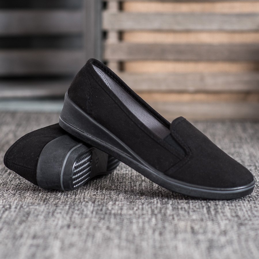 Les slipons en daim SHELOVET noirs sont un choix parfait pour les femmes qui apprécient la combinaison du confort et du style à la mode. Ces chaussures élégantes, confectionnées en simili daim de haute qualité, seront parfaites pour de nombreux styles du quotidien. Grâce à leurs couleurs universelles, les slipons noirs se combinent facilement aussi bien avec des jeans amples qu'avec des robes aérées, ce qui en fait un incontournable absolu dans toute garde-robe.