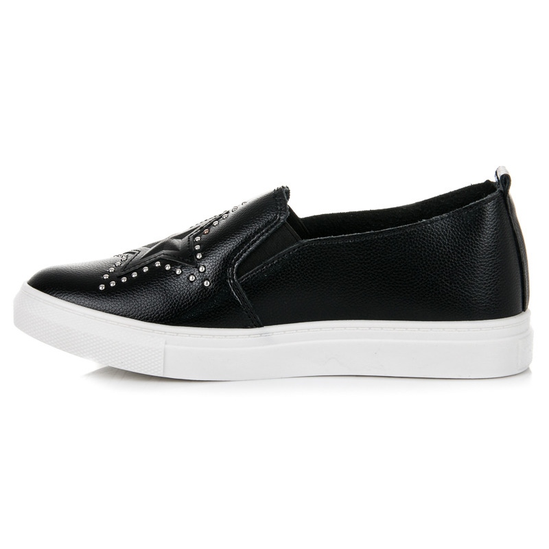 Découvrez un style et un confort uniques avec des slip-ons noirs avec une étoile appliquée ! Ces chaussures originales sont la combinaison parfaite entre design tendance et fonctionnalité qui répondront aux besoins de chaque femme. Fabriqués en cuir écologique souple, les slip-ons sont légers et s'adaptent parfaitement au pied, ce qui les rend parfaits pour un usage quotidien.