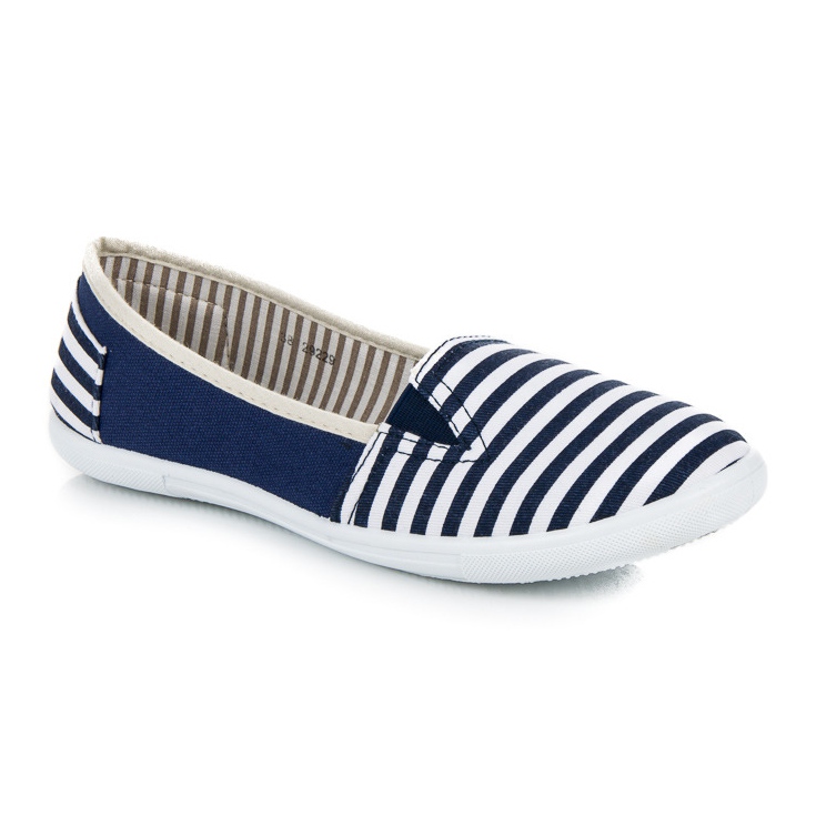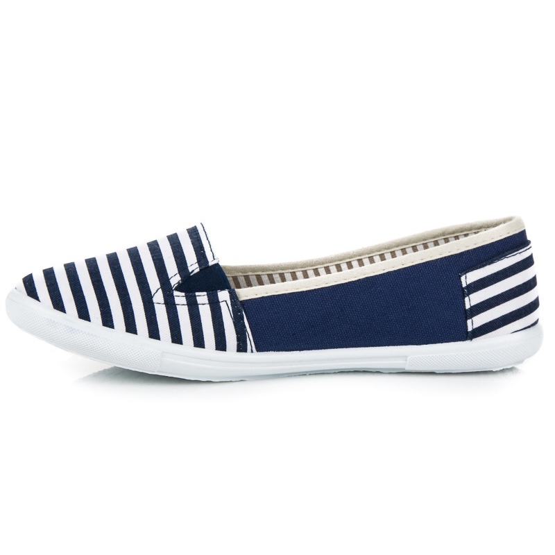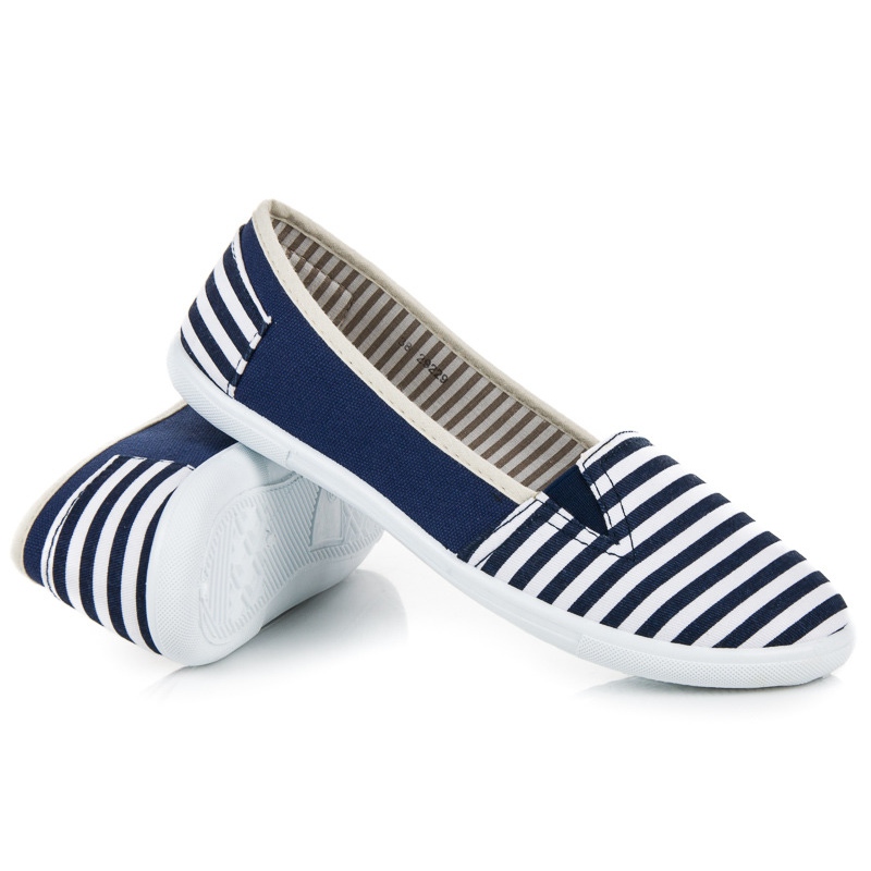 Nous vous présentons des slip-ons rayés extrêmement élégants dans des tons de bleu, qui correspondent parfaitement aux dernières tendances de la mode. Un produit d'une marque renommée, destiné aux femmes, allie confort et apparence élégante, ce qui en fait un excellent choix pour un usage quotidien.