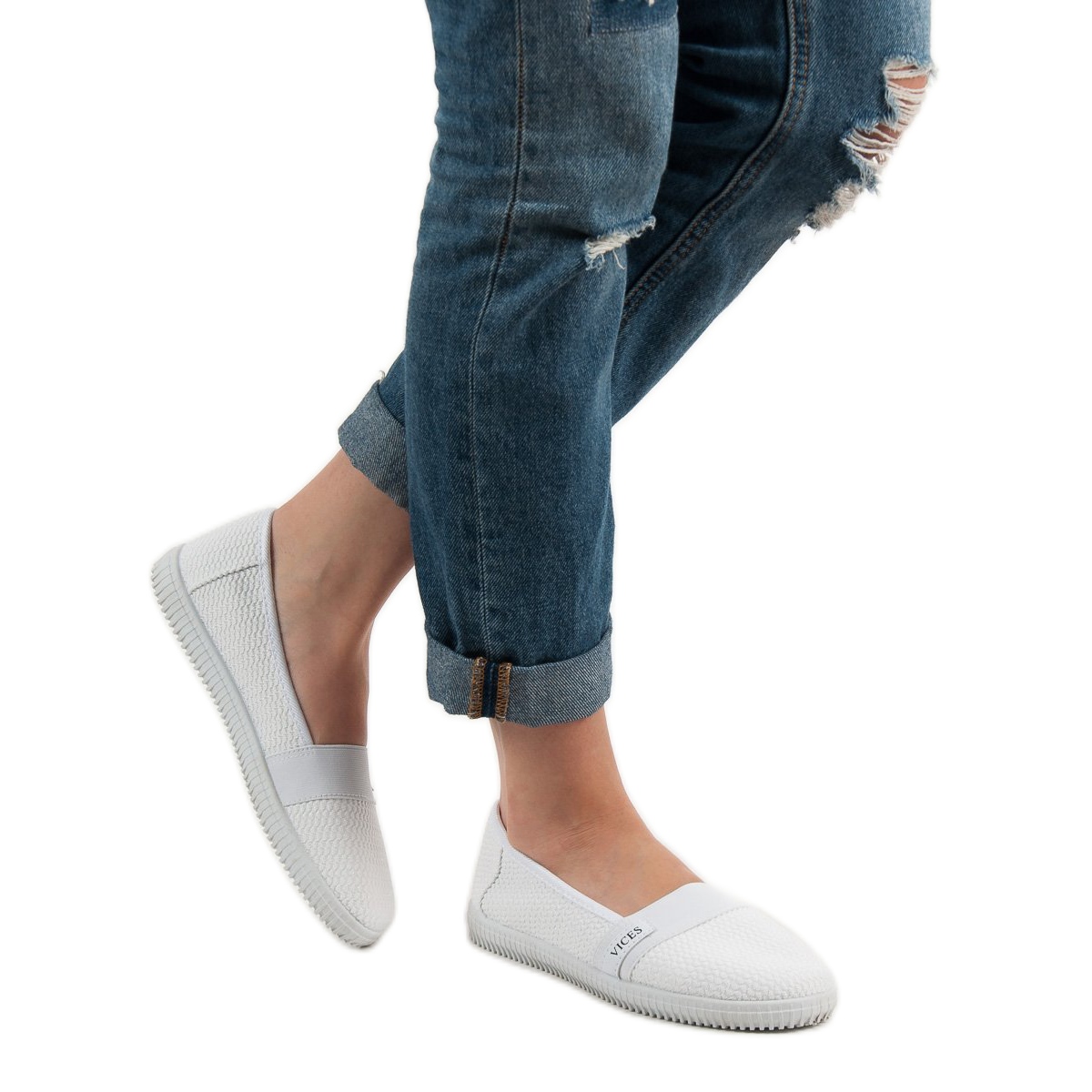 Les slip-ons VICES blancs sont le choix parfait pour les femmes qui apprécient le confort et le style au quotidien. Ces baskets à enfiler se distinguent par des finitions de grande qualité et des matériaux soigneusement sélectionnés. Fabriqués en tissu blanc et aéré, les slipons garantissent une parfaite ventilation, ce qui les rend parfaits pour les journées de printemps et d'été.