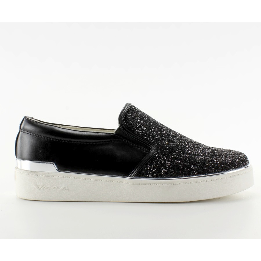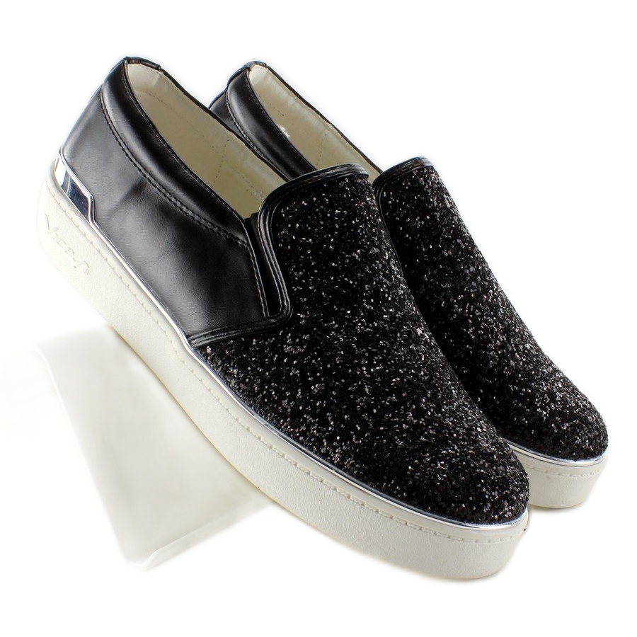 Nous vous présentons les slip-ons 788-26 élégants et élégants en noir - le choix parfait pour les femmes qui souhaitent allier confort et élégance. Ces baskets à enfiler tendance se distinguent par une semelle blanche avec un subtil insert métallique, soulignant leur caractère élégant.