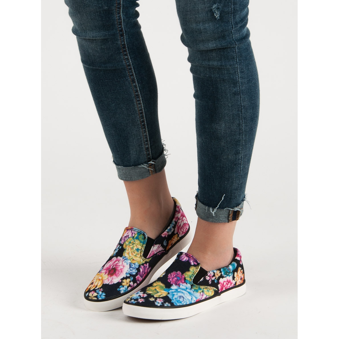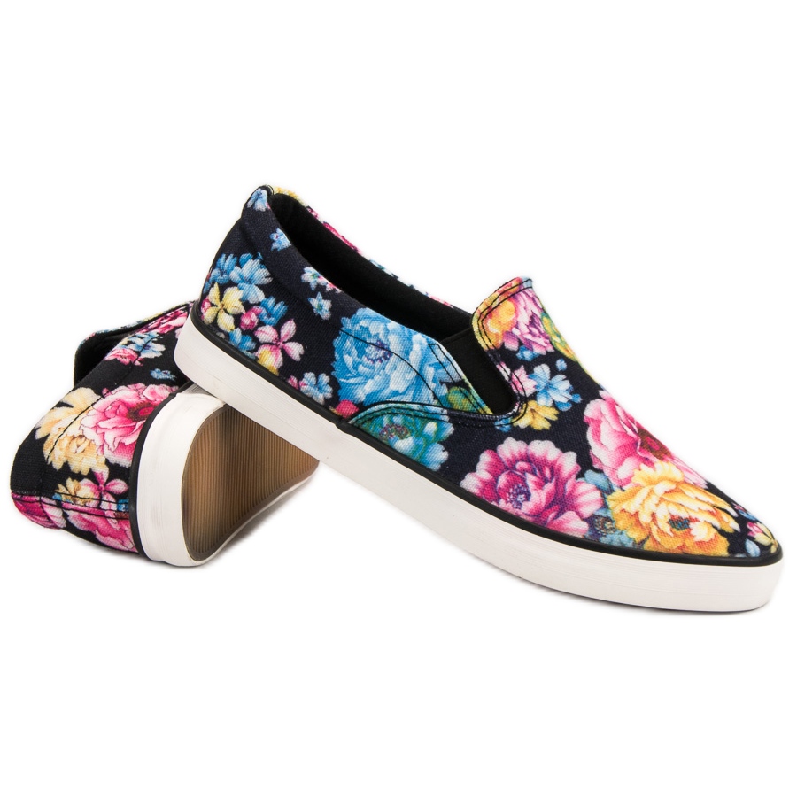 **Yes Mile Floral Slipony - Baskets noires et multicolores pour femme**
