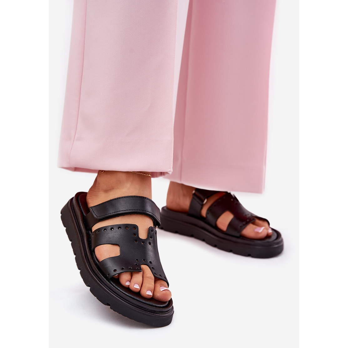Slippers en cuir naturel pour femmes sur la plate-forme Zazoo 40440 noire