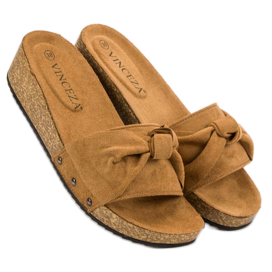 Les tongs en daim marron VINCEZA sont le choix parfait pour les journées d'été qui privilégient un style décontracté. Ces tongs disposent d'une petite plateforme de 4 cm de hauteur qui affine visuellement la silhouette tout en assurant un confort au porté. Fabriqués en cuir suédé écologique, avec un insert textile, ils offrent une excellente ventilation et un excellent confort pour les pieds.