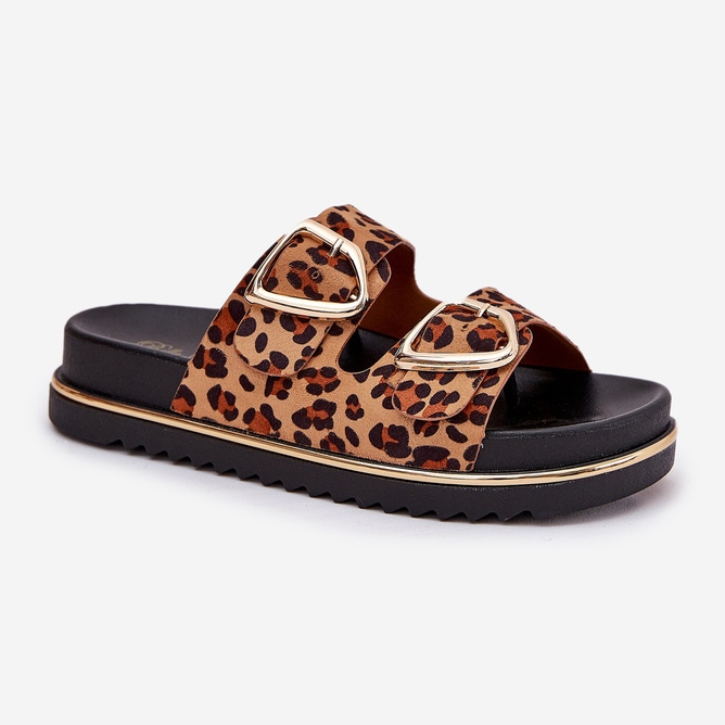 Nous offrons des léopards pour femmes sur la plate-forme avec des boucles dorées, qui sont la solution parfaite pour les jours d'été. Fabriqués en daim eco, ces volets élégants combinent le design moderne et le confort. La plate-forme de 3,5 cm de haut assure de la stabilité et du confort tout au long de la journée, ce qui en fait le choix parfait pour toutes les stylisations décontractées.