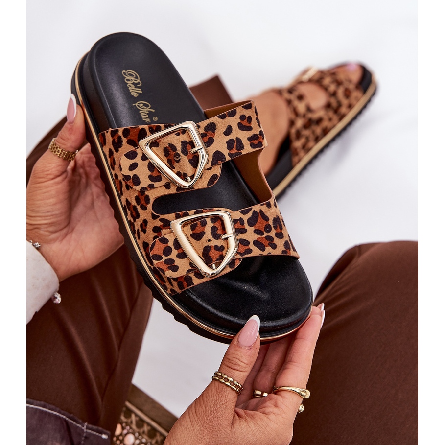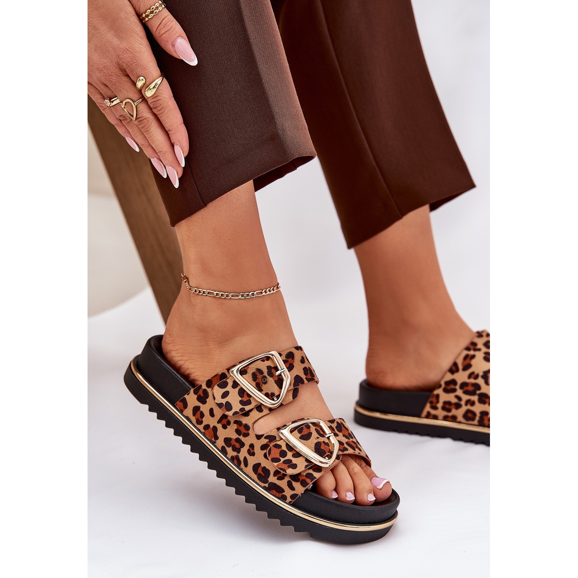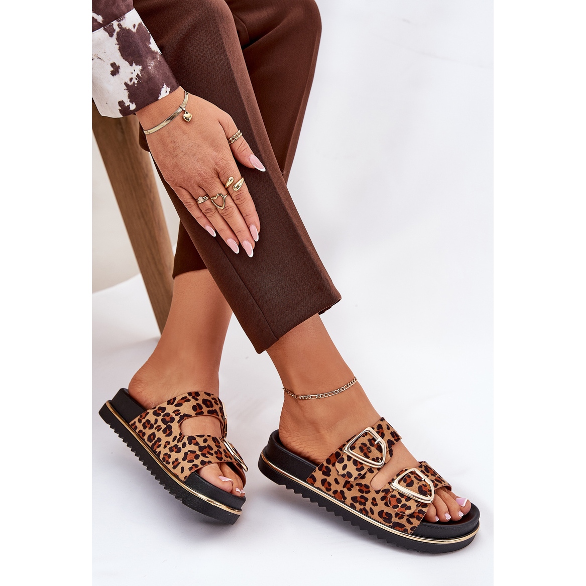 Inna marka Slippers pour femmes avec imprimé léopard sur la plate-forme avec des pinces dorées brunes