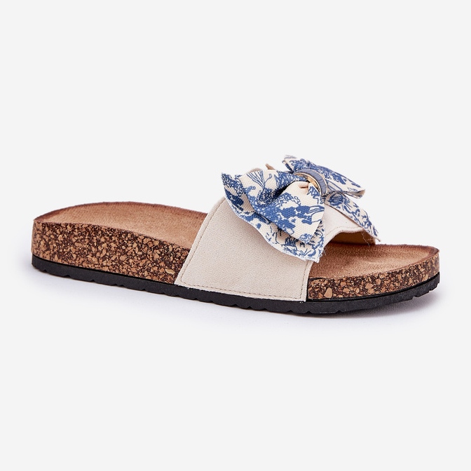 Détails: Slippers pour femmes avec un arc sur la plate-forme en liège bleu beige