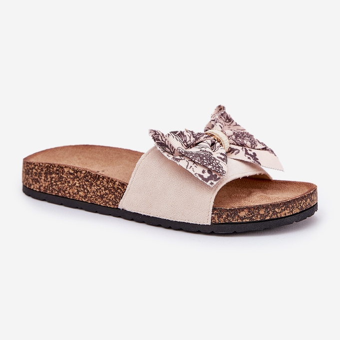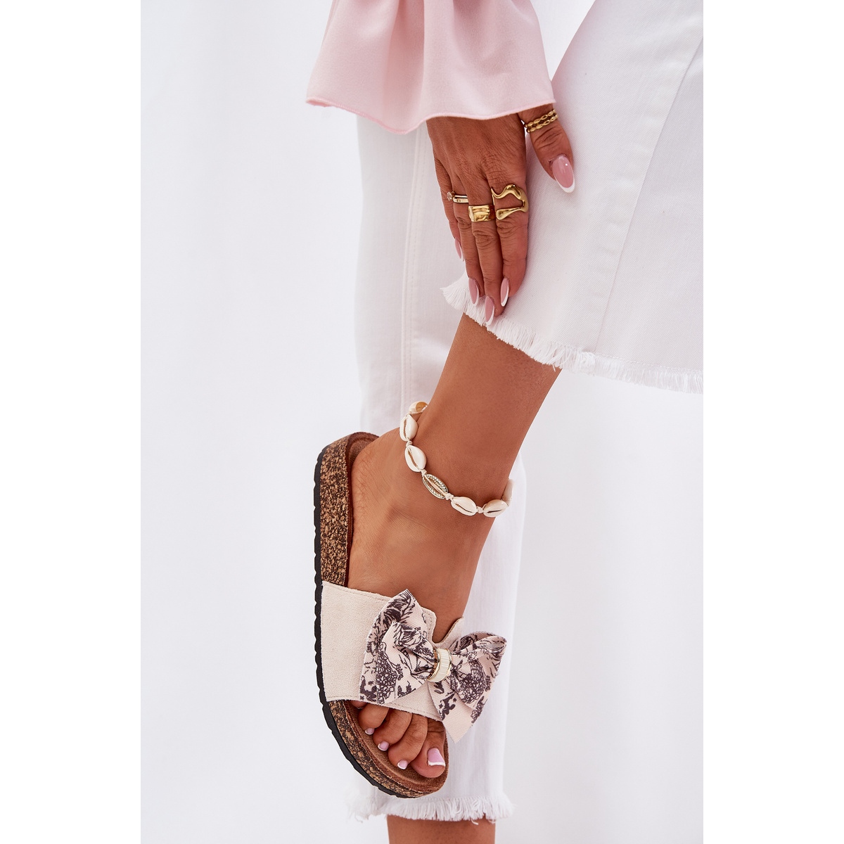 Détails: Slippers pour femmes avec un arc sur une plate-forme en liège beige