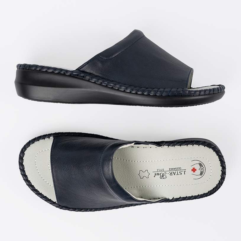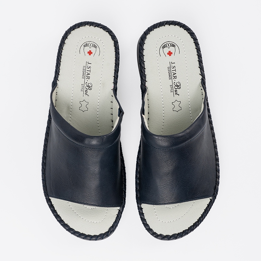 Détails: Slippers pour femmes avec un insert en cuir bleu marine