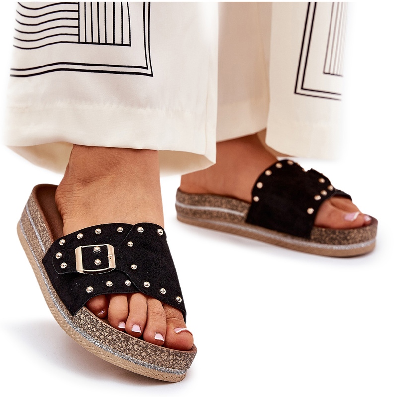 Détails: Slippers pour femmes sur la plate-forme avec une boucle et des goujons noirs le noir
