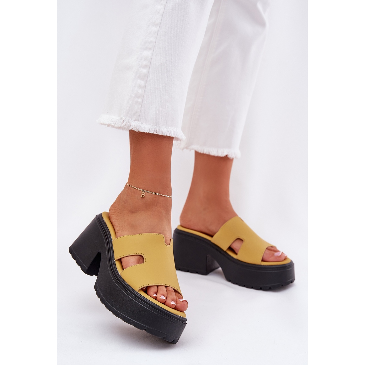 Détails: Slippers pour femmes sur la plate-forme et talons massifs jaunes