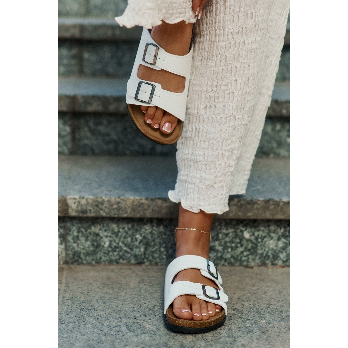 Détails: Evento Slippers pour femmes sur une plate-forme en liège avec des boucles blanches