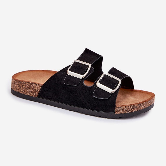 Les pantoufles pour femmes sur une plate-forme en liège avec des boucles noires sont le choix parfait pour les jours chauds, combinant le confort avec le design à la mode. Fabriqués en daim eco de haute qualité, ils sont non seulement élégants, mais aussi respectueux de l'environnement. Deux rayures avec des boucles permettent un ajustement individuel au pied, ce qui signifie que chaque moment passé dans ces tongs sera un plaisir.